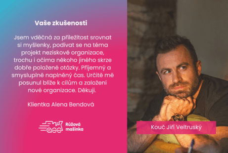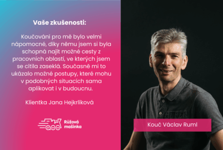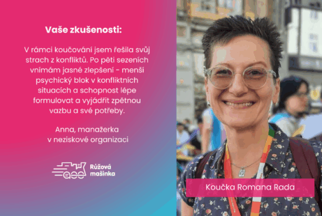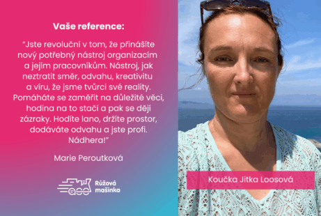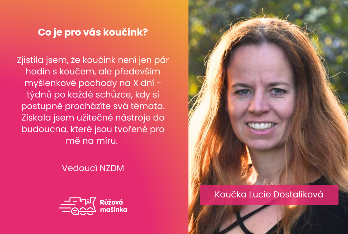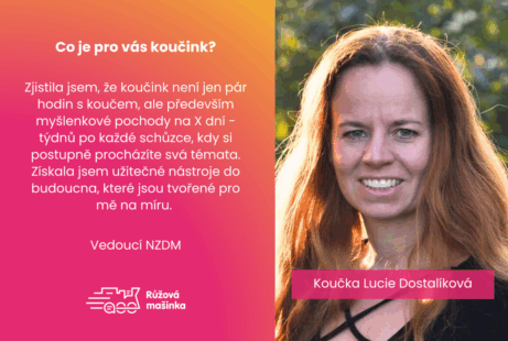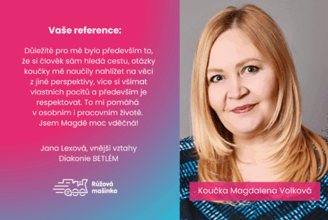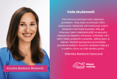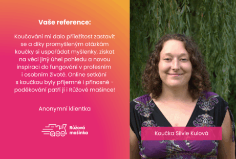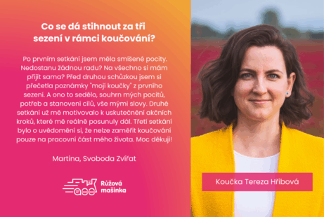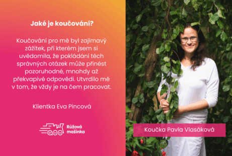 S koučováním v Růžové mašince jsem spokojená. Jednak je to opravdu skvělý trénink na reálných klientech a jednak, což jsem na začátku nečekala, mi to rozšiřuje i obzory. Moc si vážím, že jako absolventi tuto možnost máme.